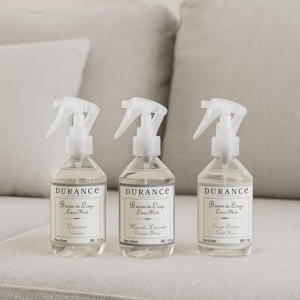 El perfume textil es ideal para perfumar grandes superficies como cortinas, sábanas o sofás, y también para refrescar toallas, albornoces o alfombras con un aroma sutil y delicado.