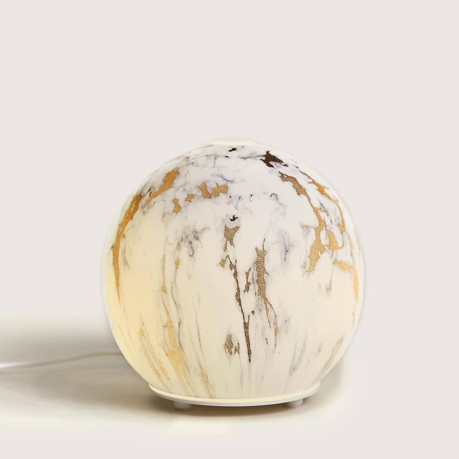 Con su acabado blanco decorado con un delicado estampado marmoleado , este difusor aporta un toque atemporal y cómodo a cualquier estancia, combinando decoración y bienestar aromático .