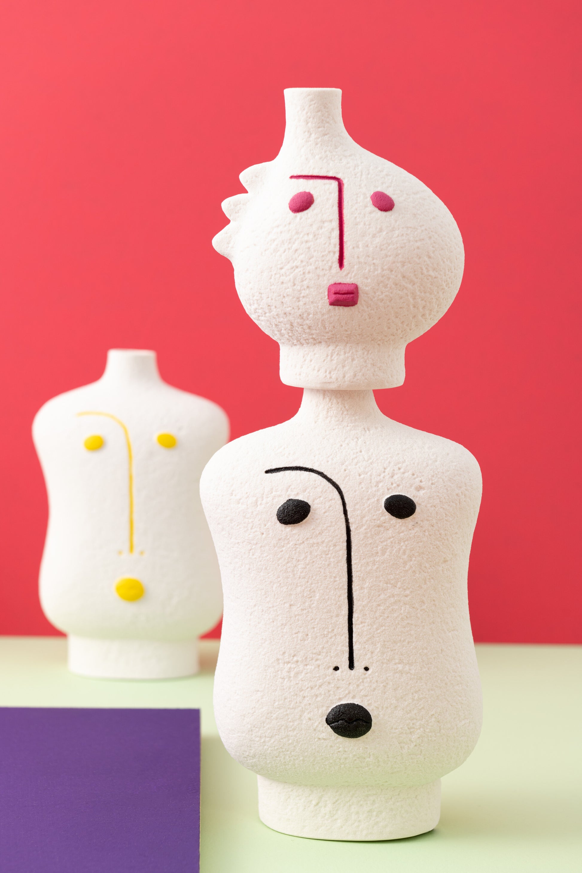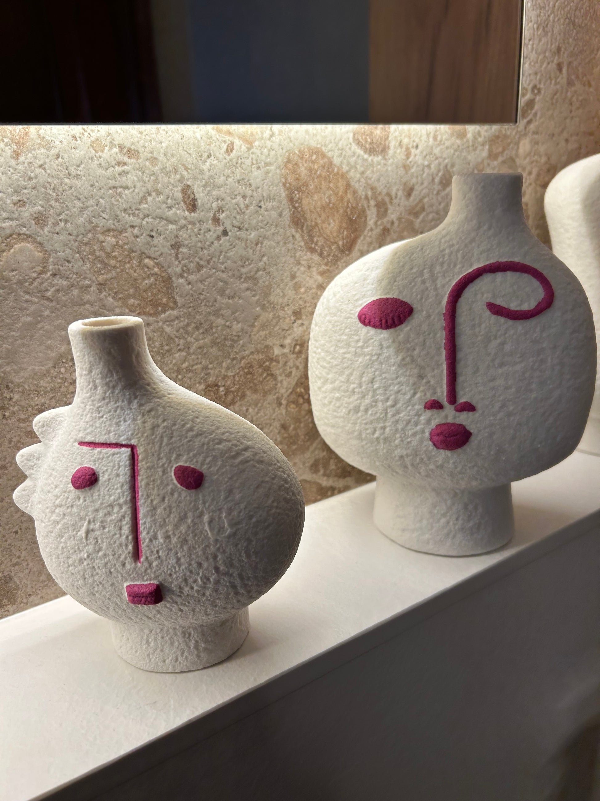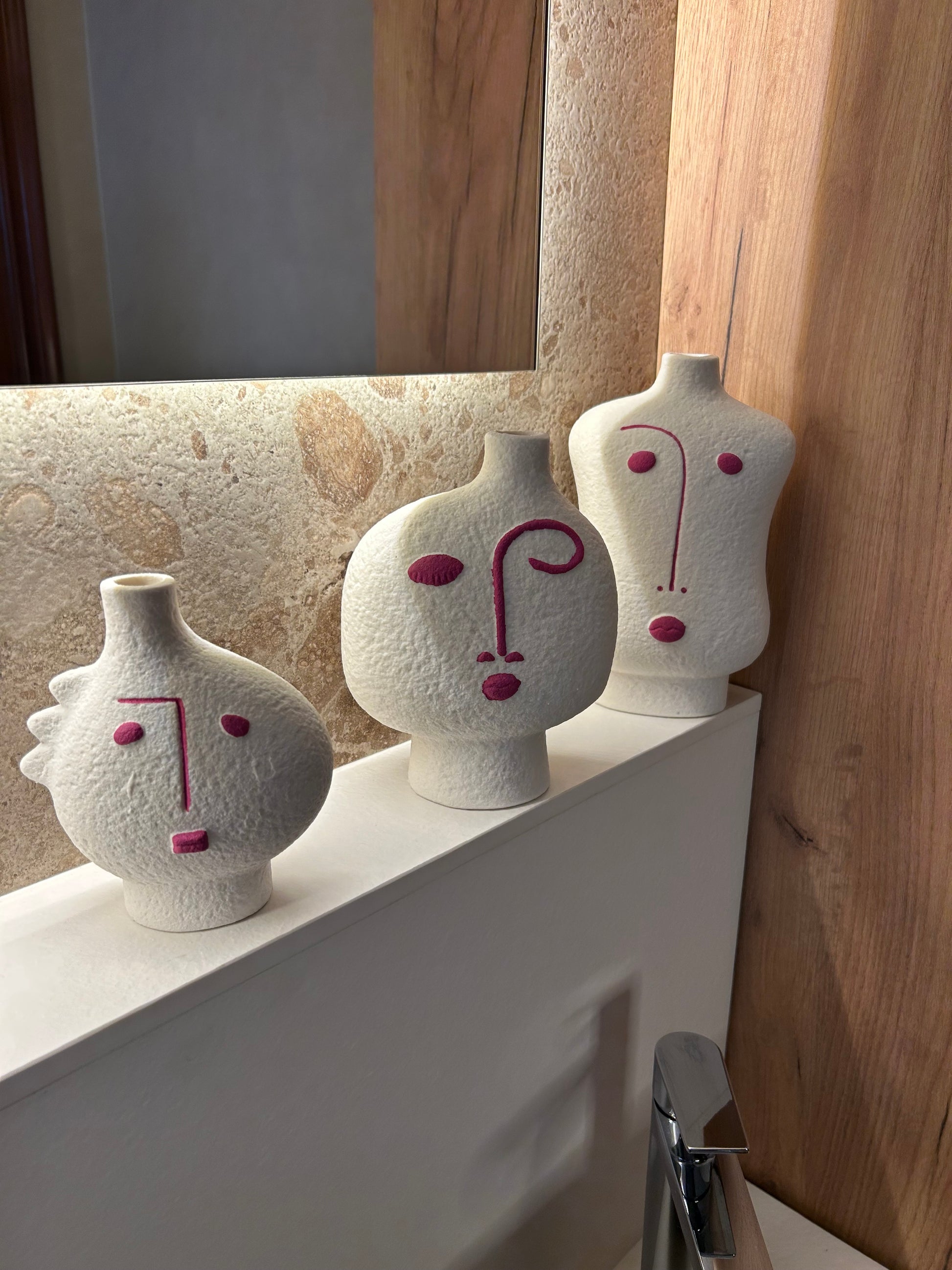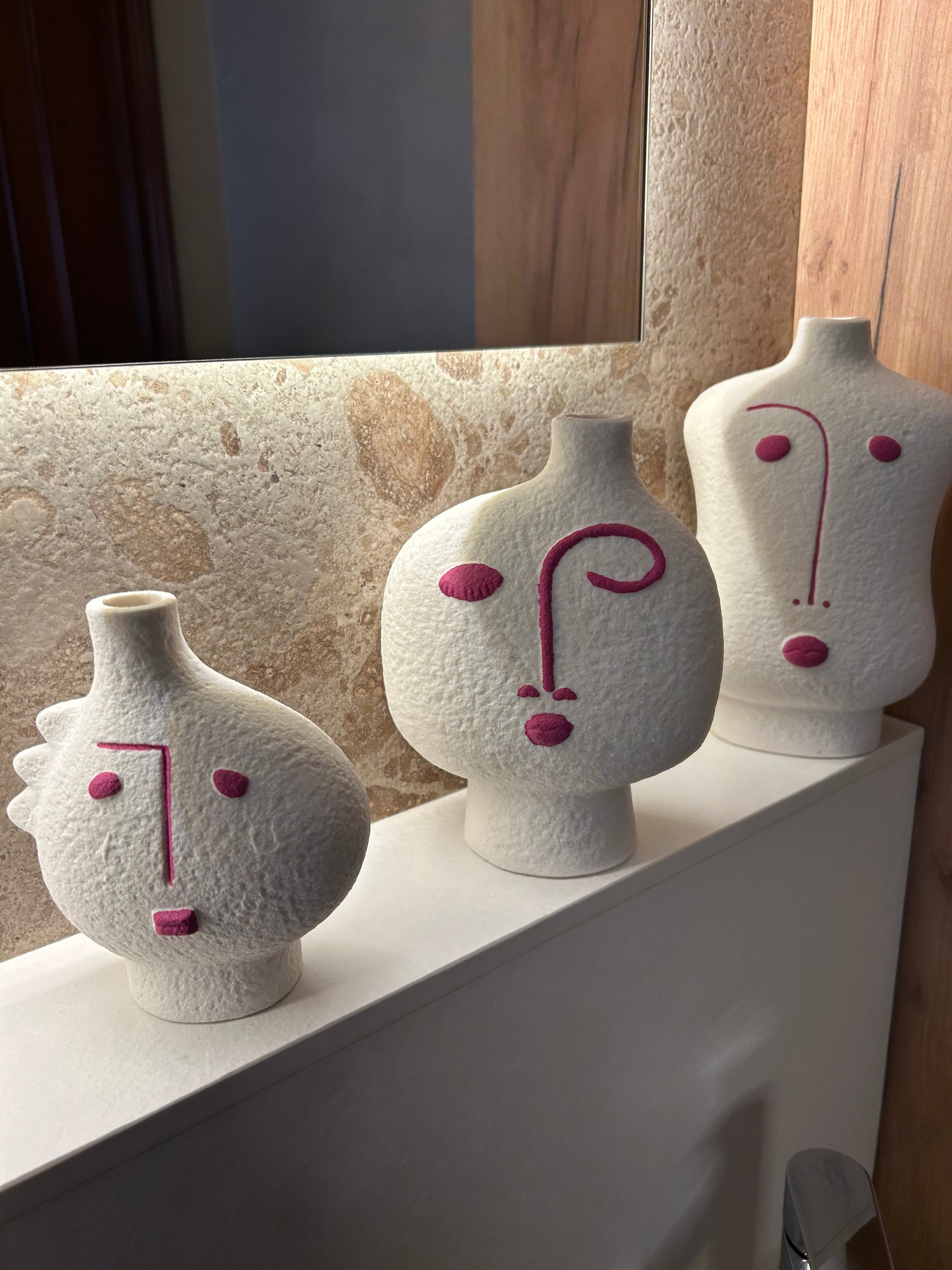 Juego De 3 Jarrones Cara Abstracto Porcelana Fucsia/Blanco
