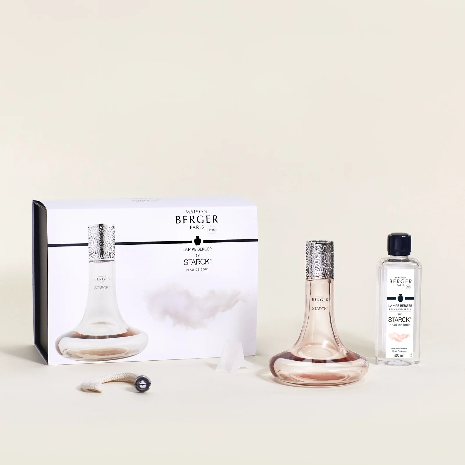 Este objeto, embellecido con un marco de metal plateado y detalles orgánicos, invita a explorar un mundo microscópico donde se modelan átomos, moléculas e iones. Por unos momentos, póngase la bata de técnico de laboratorio con el cofre Lámpara Berger by Starck Peau de Pierre y descubra la fragancia masculina para el hogar Peau de Pierre y su faceta femenina, disponible en formato de 500 ml.