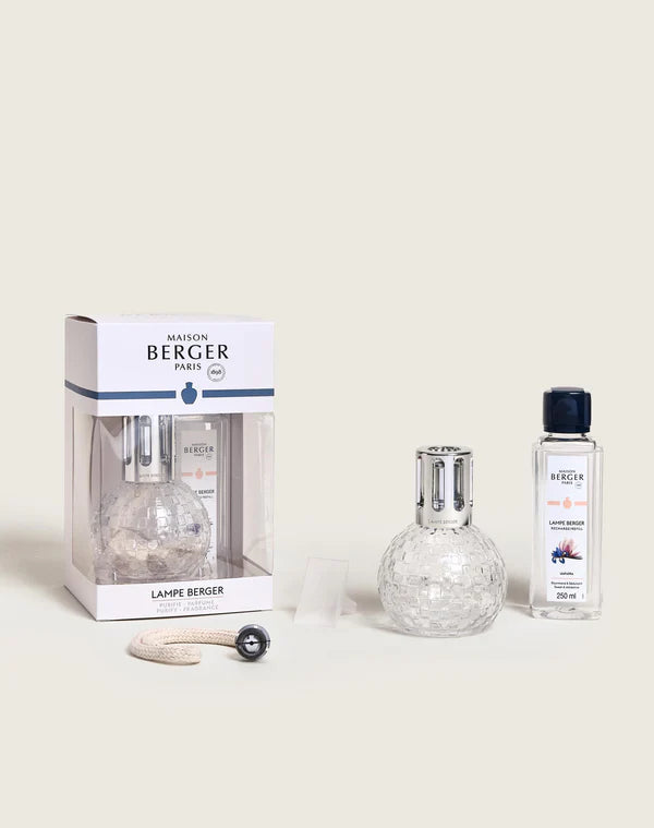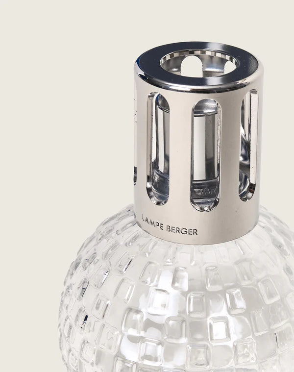 El Cofre Lámpara Berger Disco Transparente combina un diseño redondo icónico con un motivo damero en vidrio en hueco y relieve, aportando modernidad y dinamismo a cualquier interior. Incluye el perfume Liliflora de 250 ml. Gracias a su sistema de catalización, la lámpara purifica el aire, elimina malos olores y perfuma de forma duradera, ofreciendo una experiencia sensorial refinada que une bienestar y estilo.