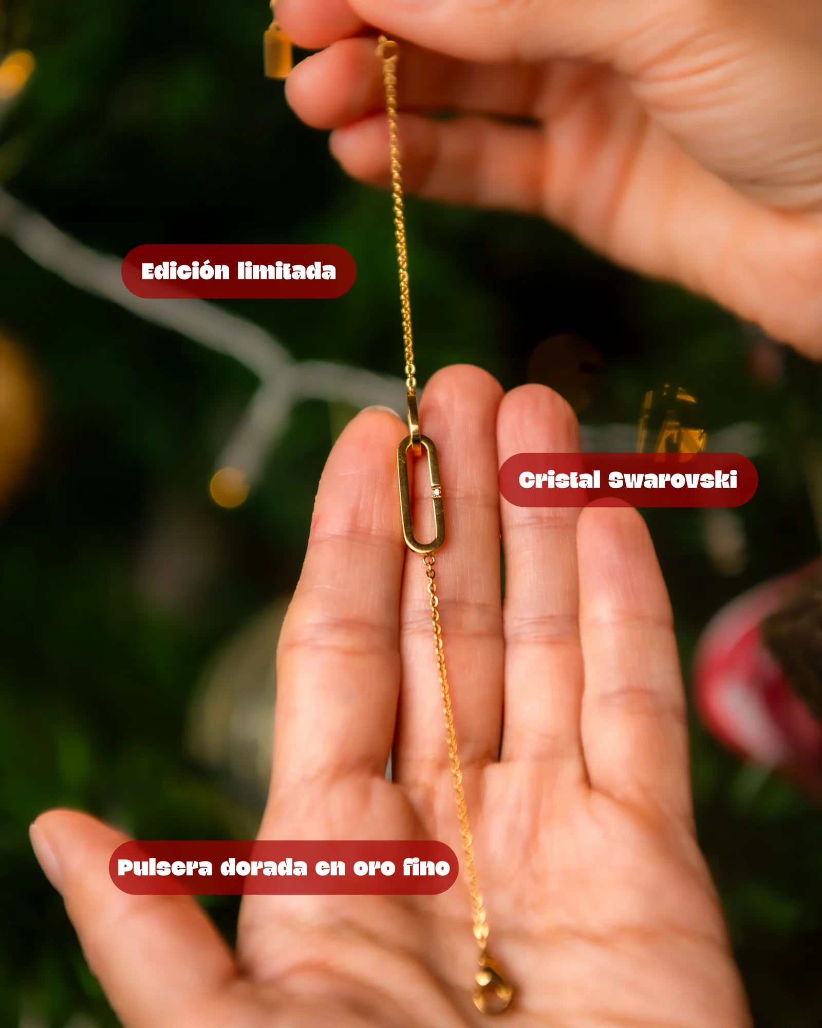 - Pulsera de acero inoxidable con baño de oro fino de 18 quilates y cristal Swarovski